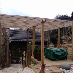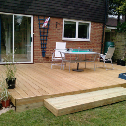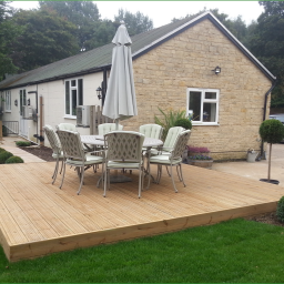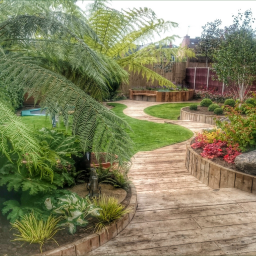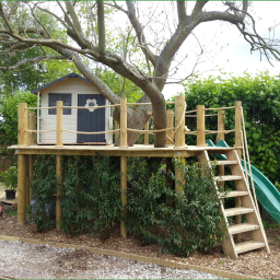 A prestigious new build property with a requirement for a family, child friendly garden to match. The brief - to include: formal lawns, flower/shrub borders, vegetable garden, greenhouse, patio and deck areas and tree house for the kiddies.