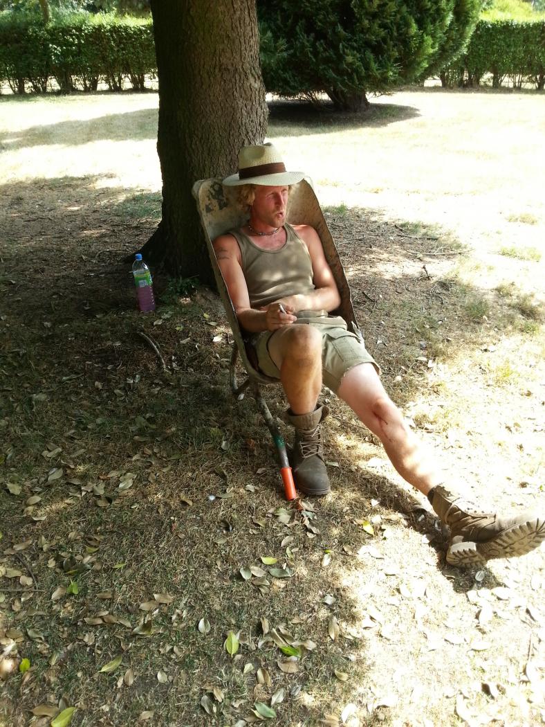 Chris testing his new 'Wheelbarrow Seat'